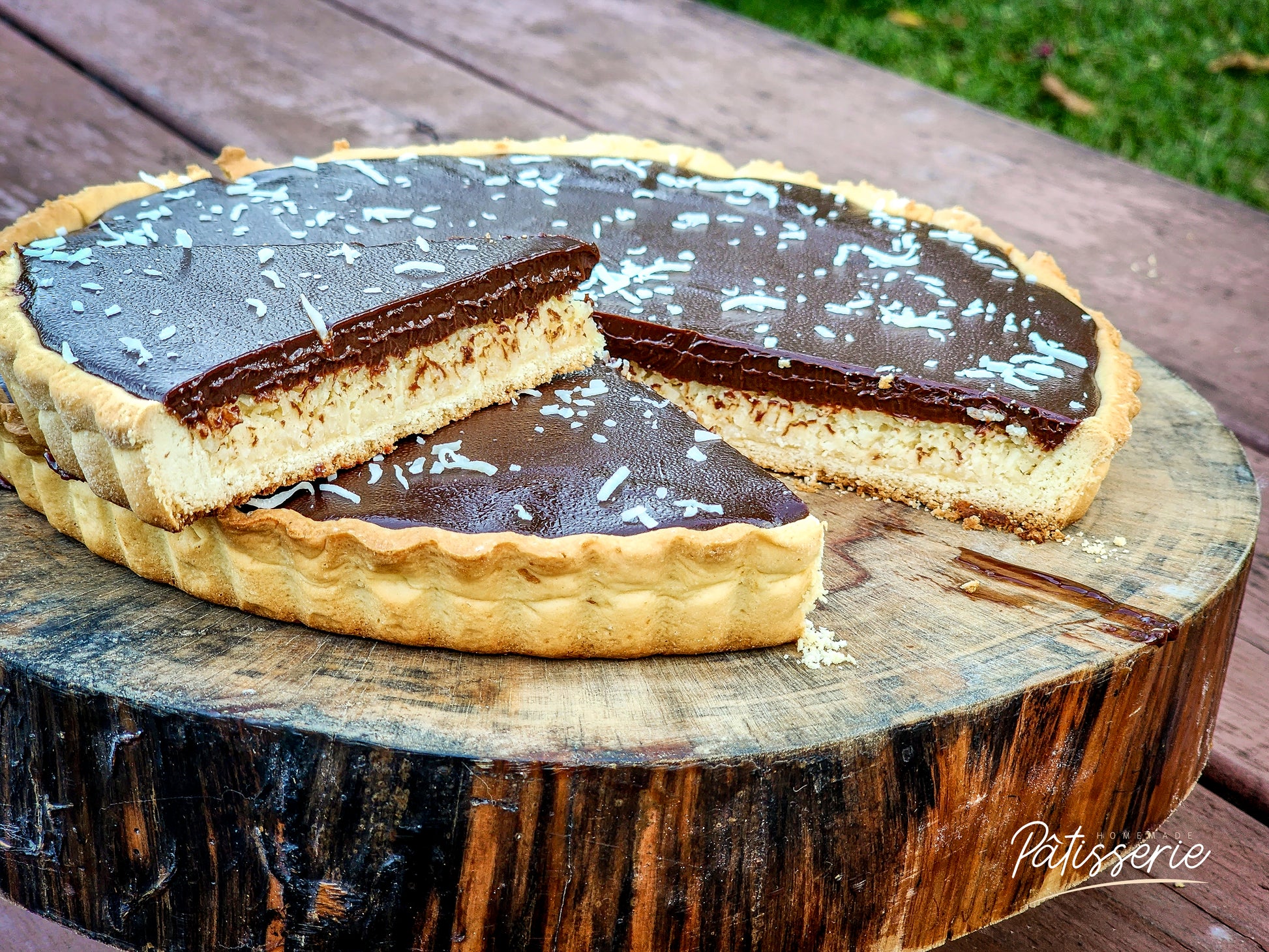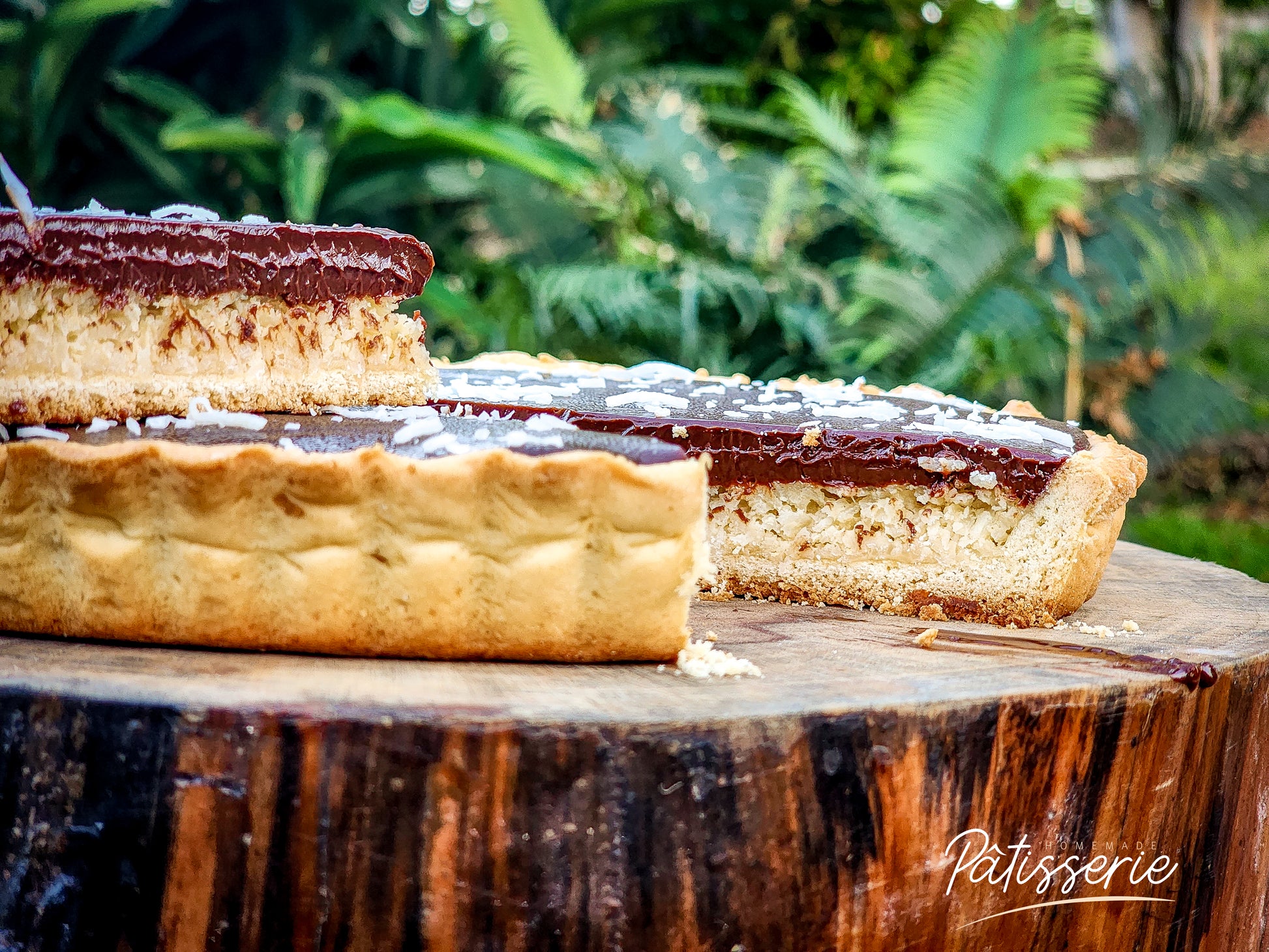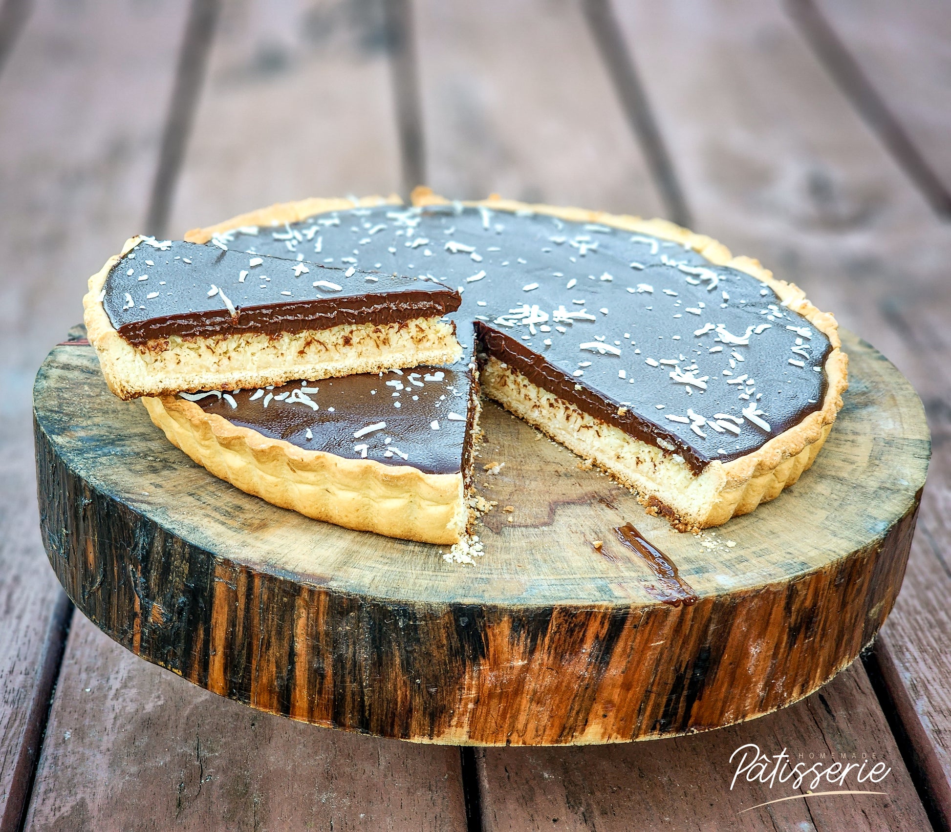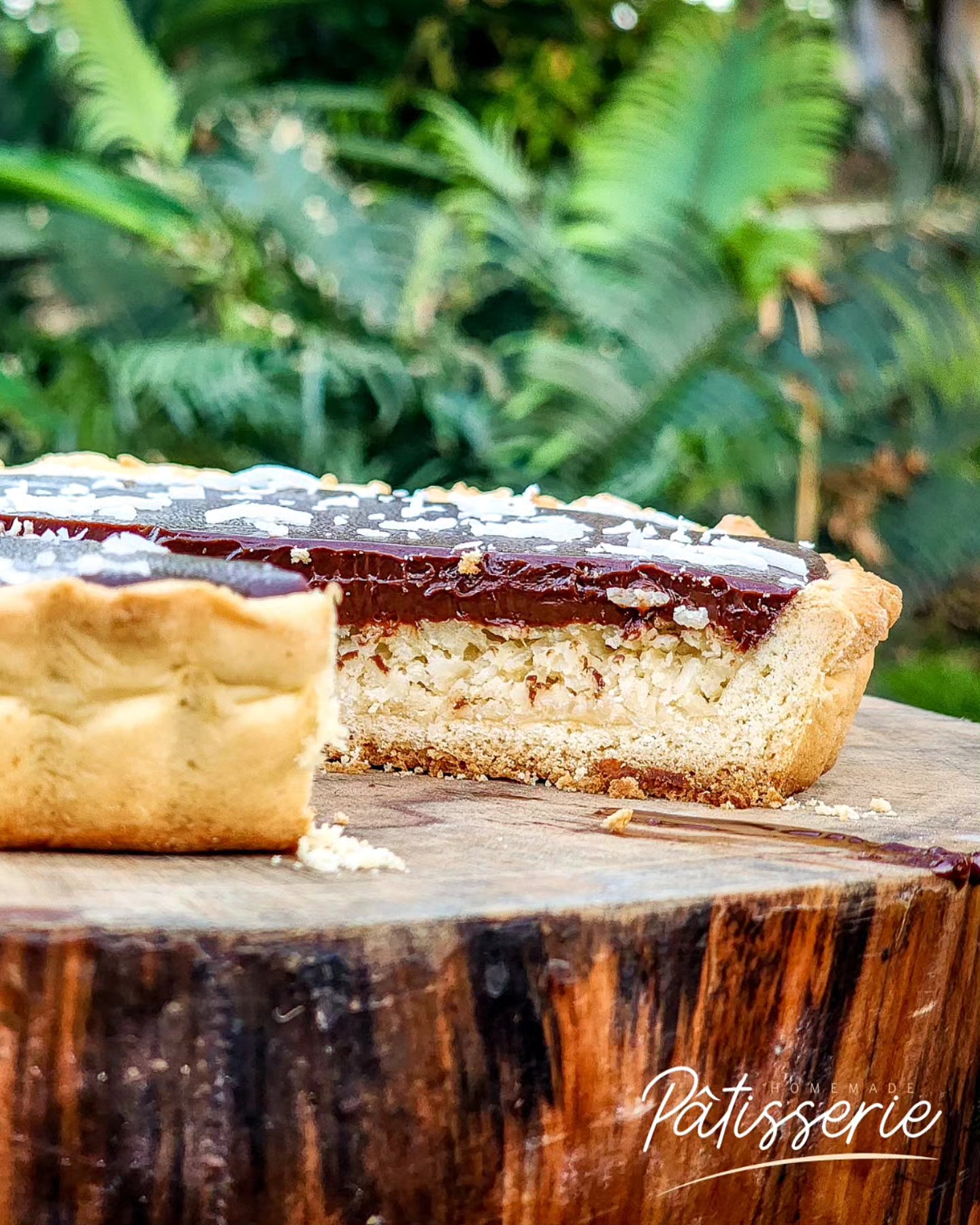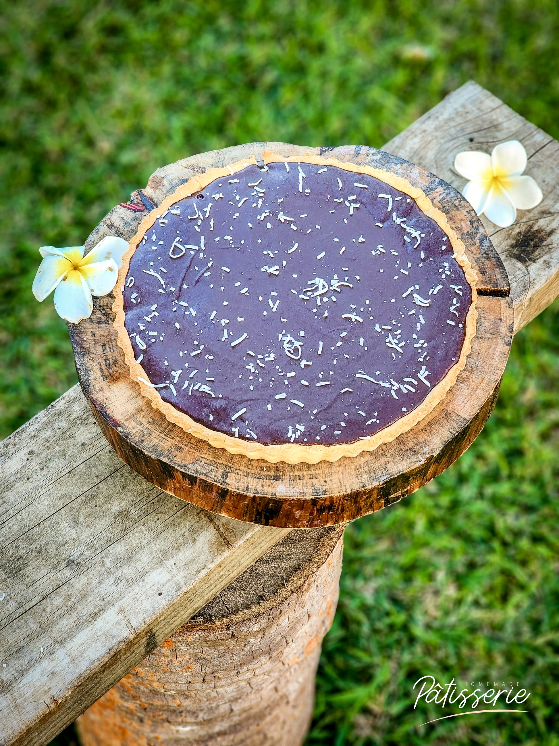 Take a sweet escape with our Bounty Pie — perfect for your coffee break or family gathering! This tropical delight features a buttery pie crust topped with smooth coconut cream and finished with a rich layer of dark chocolate.