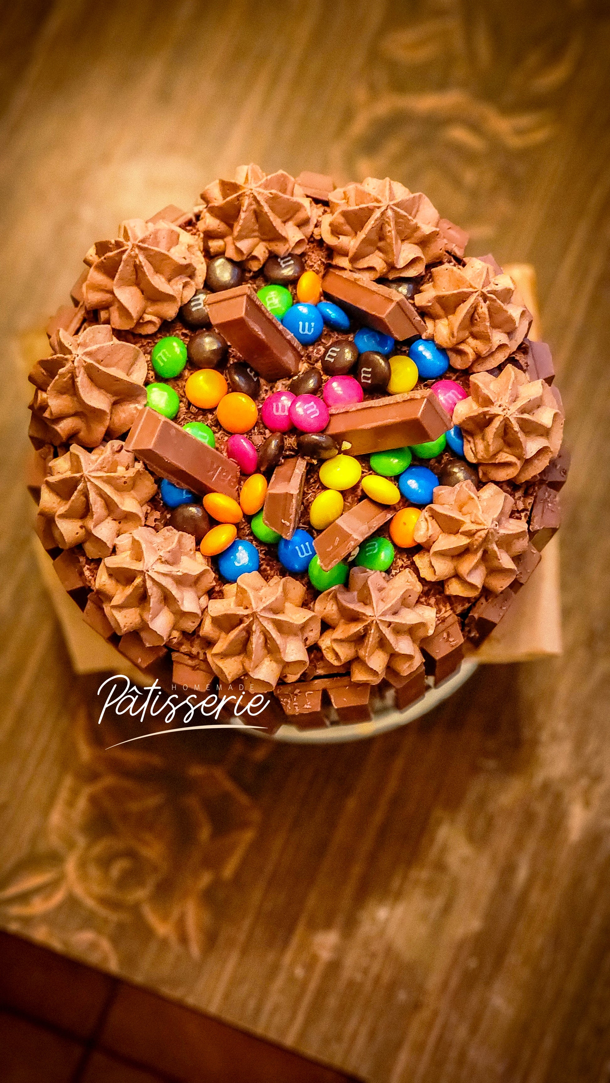 Two layers of moist, rich chocolate cake filled and topped with light, airy whipped cream, adorned with delightful chocolate decorations. Perfect for sharing sweet moments and creating memories that last a lifetime!
