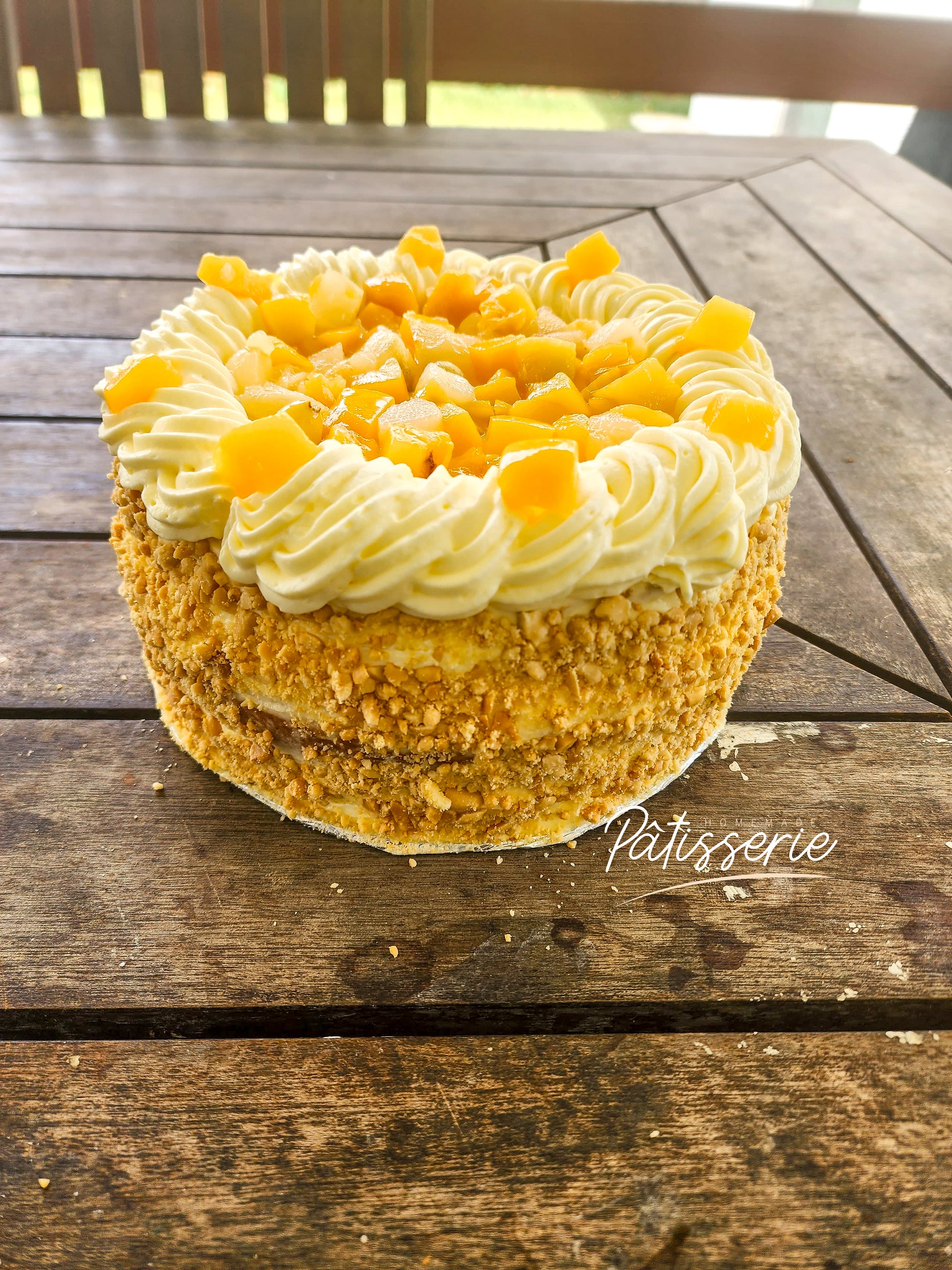 Each layer is generously filled with a mix of juicy, fresh fruits and light, vanilla custard cream, creating a perfect harmony of flavors, wrapped with crushed peanut. Sweet, fresh, and irresistible — perfect for celebrations, or any special occasion!